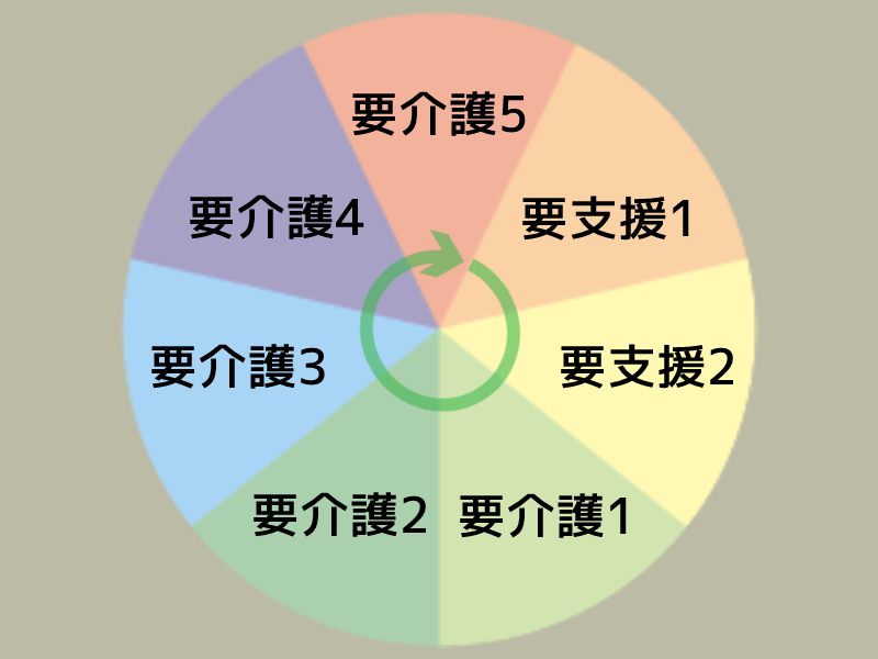 厚生労働省の基準により要支援1~要介護5の段階で分けられています。